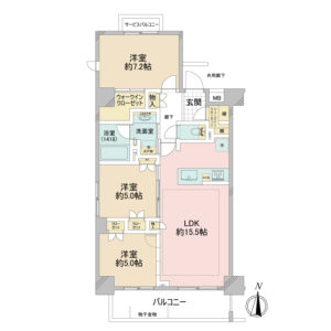 ■専有面積/(壁芯)72.49 ㎡(約21.92 坪)