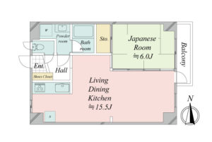 ●専有面積47.18㎡(約14.27坪)東向き 1LDK